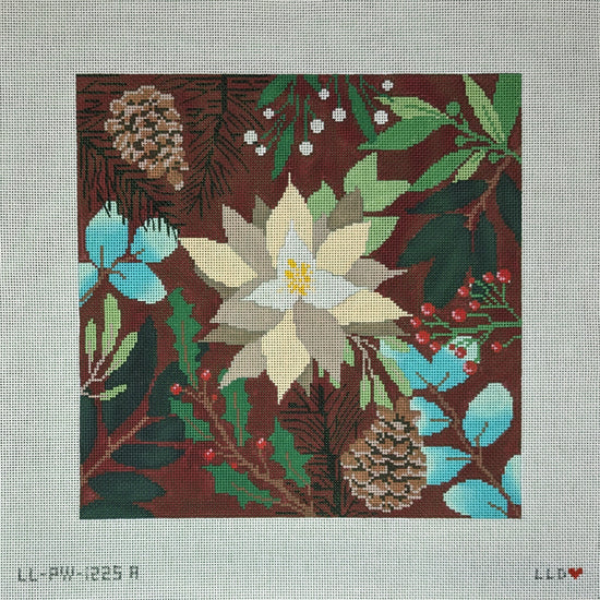 Botanical Pillow--Red with White Flower 13ct