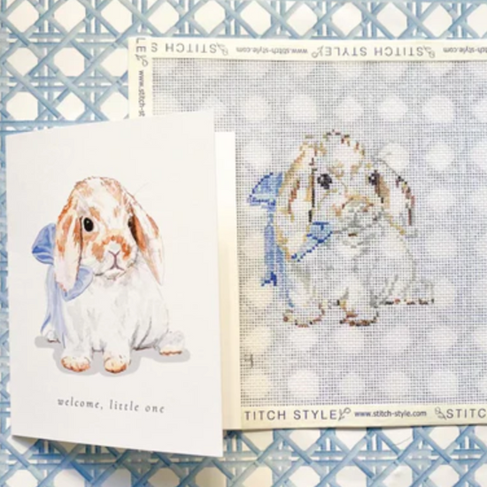 Bunny with Blue Bow Needlepoint Canvas