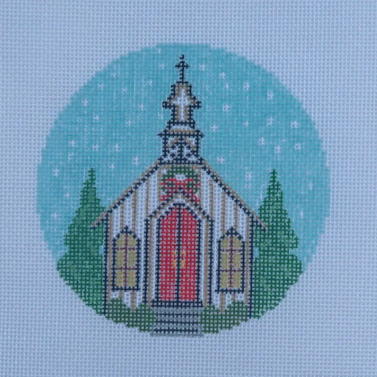 Holiday Church Round Needlepoint Canvas