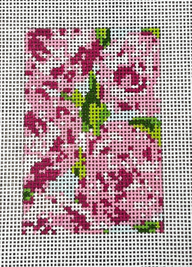 Roses on Teal Luggage Tag Needlepoint Canvas