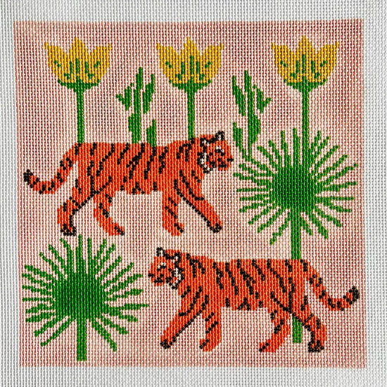 Tiger with Palms Pillow Needlepoint Canvas