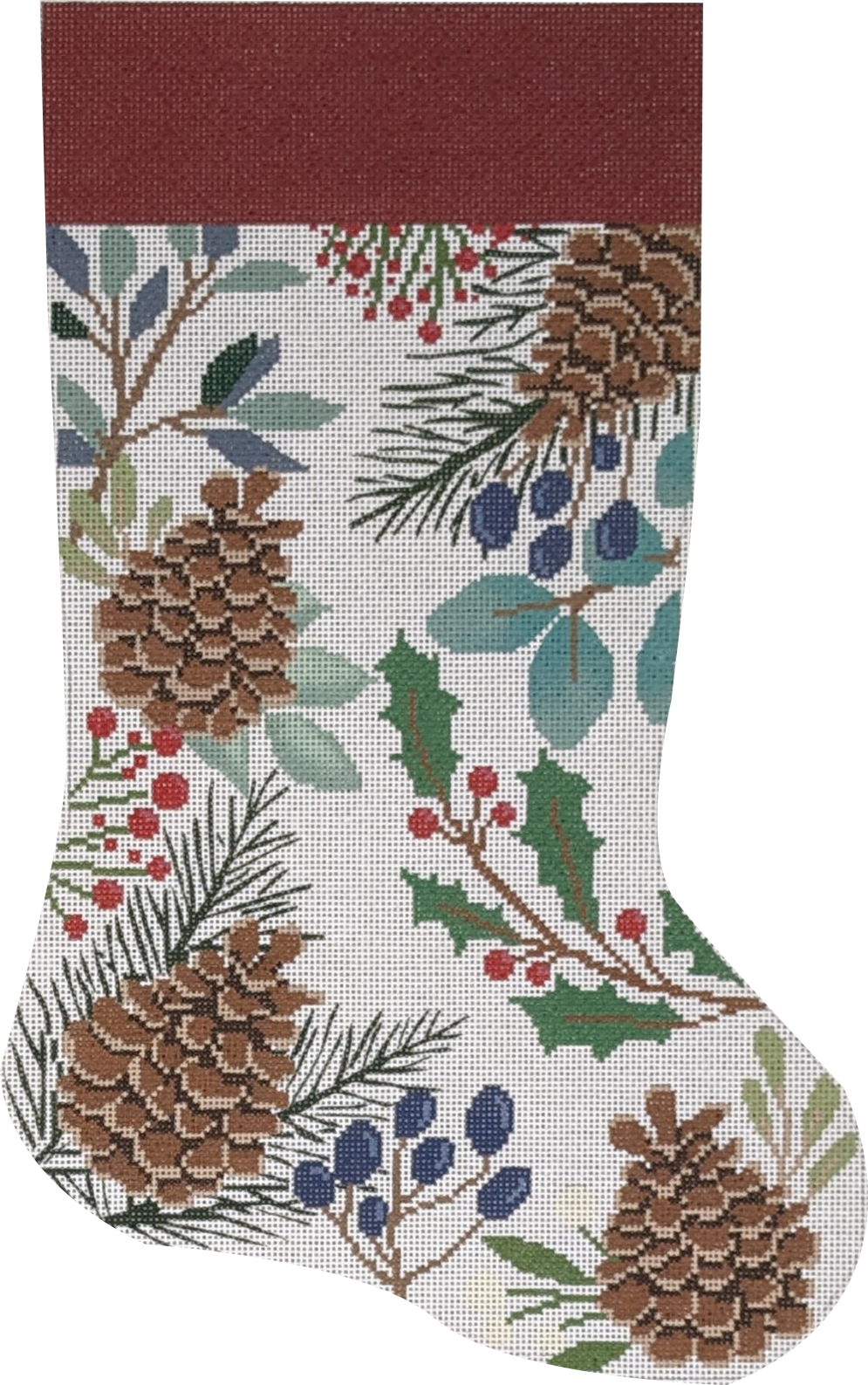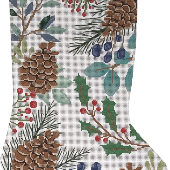 White Stocking with Pinecones Needlepoint Canvas